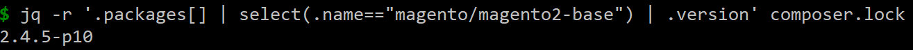 jq -r '.packages[] | select(.name=="magento/magento2-base") | .version' composer.lock